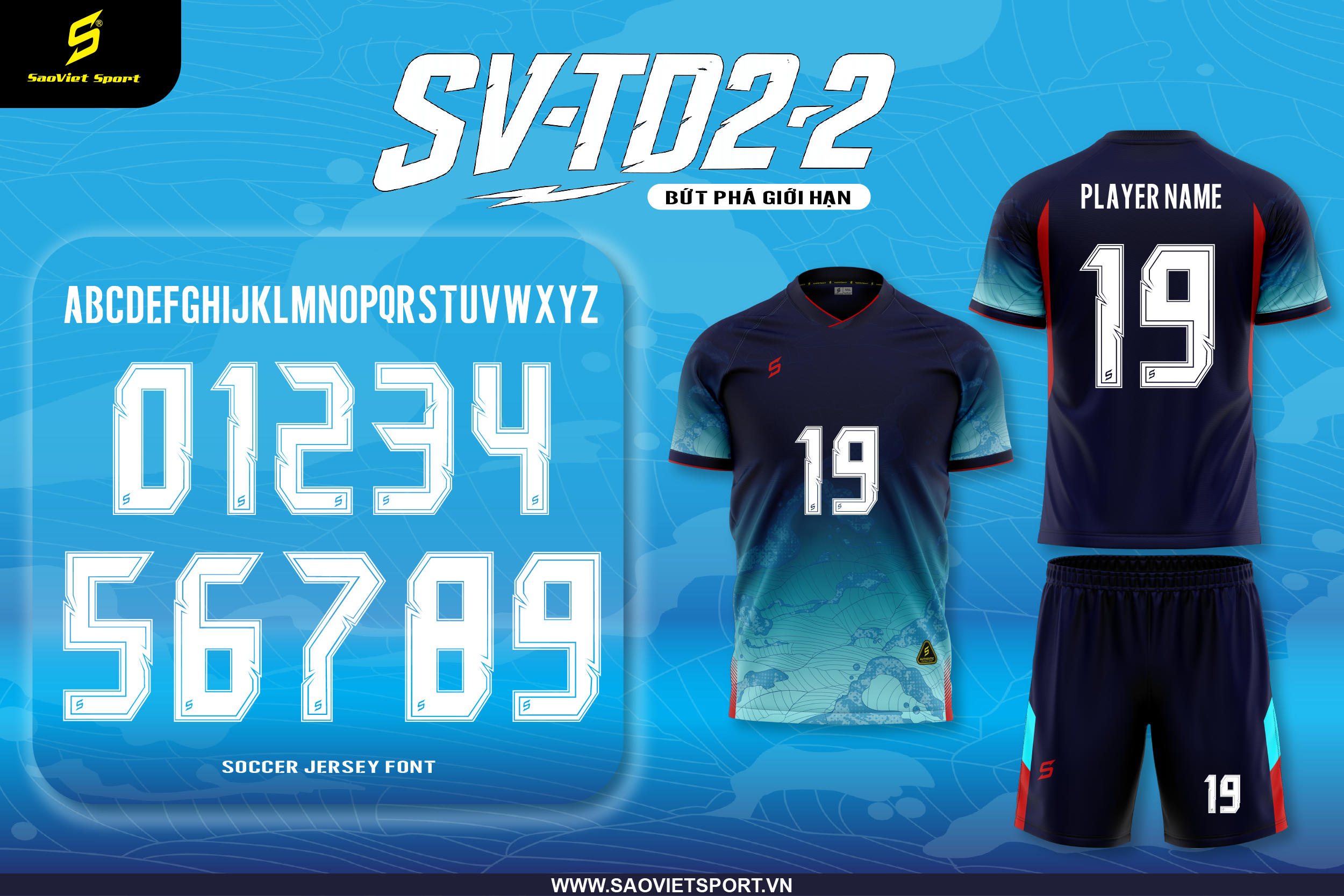 Fonts chữ SV-TD2-2 được thiết kế với những đường nét góc cạnh, khỏe khoắn, mang hơi hướng tốc độ và sự bứt phá. Điều này giúp áo đấu trở nên ấn tượng và chuyên nghiệp hơn.
